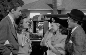 George sits at the kitchen table before his brother’s graduation party. George is raring to go to college after working four years at the Bailey Building & Loan to save the money. But his father subtly sends the longing message he would approve if George would choose to stay in Bedford Falls in his current position.